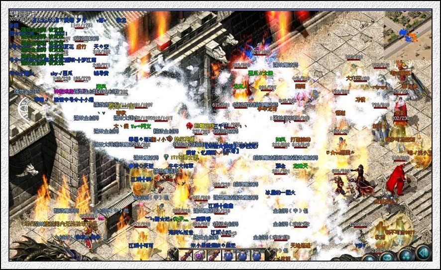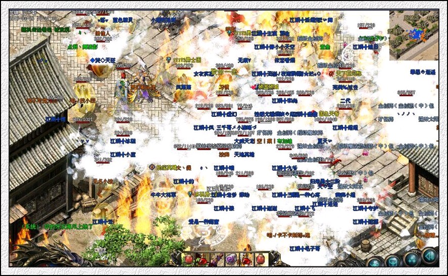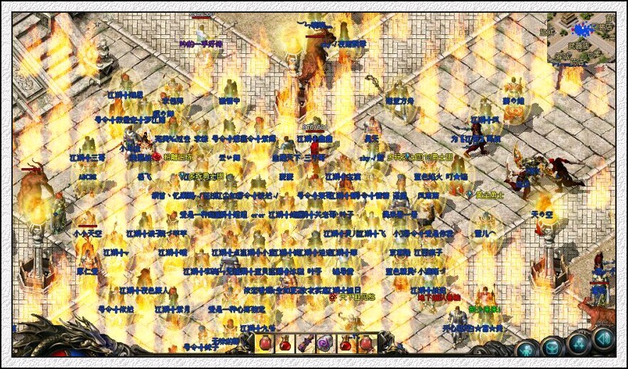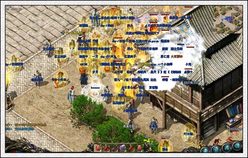 21:57 【热血★情缘】的二会 号令天下从六点垃圾口一直贴着城墙左边,从沙巴克大门左边推出去,一直从大门口打到天时,再推向700:400.