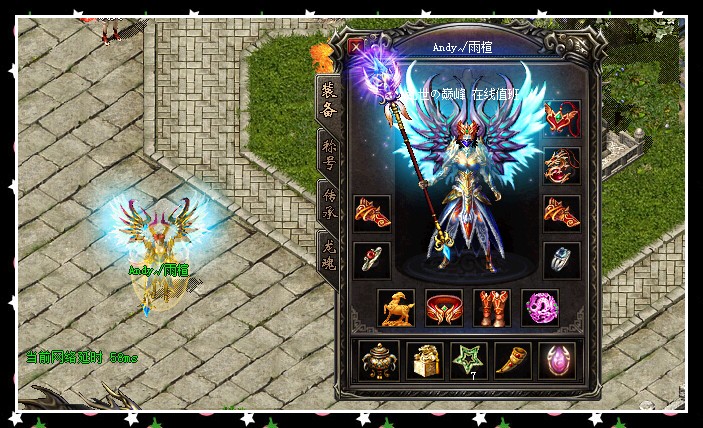 穿过庄园的人潮,看到了这个并不让人陌生的叱咤本区的领军人物仔仔,他出人意料地玩一个女法号,有一个足以让男人倾心让女人妒忌好听的游戏名Andy√雨楦,站在庄园人潮中,一身赤红奢华的龙啸装,左配摩罗赤麻戒指,右戴摩罗护身戒指,身着龙啸神甲“仔恋依,华丽的龙鳞大翅膀,如火焰般闪烁耀眼,点缀以凤羽和宝石,如夜空中的星星般晶莹剔透,在人群中足以让万众瞩目。作为行会的一员,与仔仔也有不短时间的相处与了解,这个80后的年轻小伙有着90后的率真,有着80后的激情,有着70后的沉稳,有着60后的低调,有着一群跟随他出生入死的兄弟。近些年网络游戏层出不穷,而他却只对传奇情有独钟,也曾辗转玩过其他不少区服,最后带着一众陪伴他的兄弟姐妹在国际6区成立乱世の巅峰行会,从此落地生根,一心守护自己的家园,保护自己的家人。游戏对他来说,最大的乐趣并非享受至高无尚的荣耀与战斗激情,而是每一次由于现实原因久离大家不上线,数月后上来却依然能看到一个其乐融融的大家庭的那份感动。曾经面对每一次死区时,都是纠结万分的时刻,是走?是留?若要享受PK带来的无限激情,无疑换区是最佳选择。可是他走了,行会的兄弟怎么办?这群草根兄弟该何去何从?遇到强大的对手,面对每一个弱势阶段时,是走?是留?又是难以决择的时刻。无论多大的压力多痛的打击,无论要付出多大的代价,时间或金钱在仔仔心中似乎远不比上他对大家的那份炙热感情,每一次每一次,都选择了留下,并非不能放下,而是舍不得。舍不得,简简单单地三个字,凝聚的却是传奇生涯中一个男人对一群人的情义与责任,牵挂与守护。