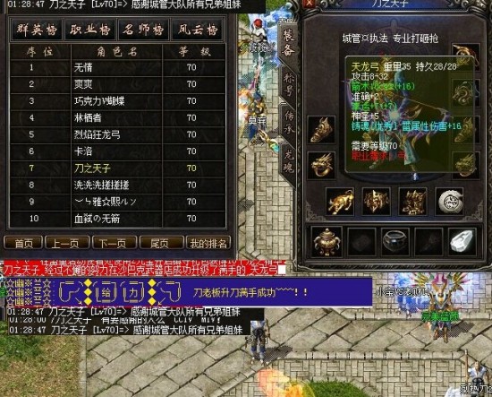 当武器扔下去的那一刻,大家都在期盼着那个结果。当系统的红字飘出,刀之天子所在的城管¤执法行会的YY 沸腾了。瞬间无数密语M向了刀之天子,都在询问,是怎么成功的。