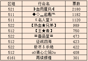 截止到8月31日晚上,全区票选最高的10大行会为: