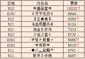 截止到9月24日晚上,全区票选最高的10大行会为: