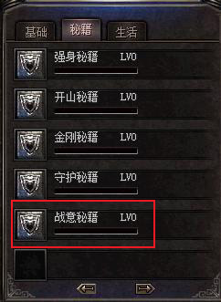 第一次查看时,“战意秘籍”图标为灰色。请点击图标,并选择自己职业下的子秘籍,此时秘籍将正式开启生效!