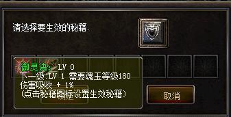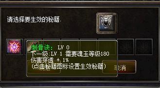 小贴士:提升战意秘籍,需要消耗一定的“战意秘方”,消耗了战意秘方后,战意秘籍的等级就会得到提升,战意秘籍下面的子秘籍会一起提升!如战士战意秘籍升到3级之后,战士战意秘籍的子秘籍:御灵诀、刺骨诀会一起升至3级!