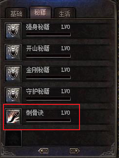 每个职业可选择2个子秘籍:御灵诀、刺骨诀。每次只可以选择一种生效,如要在不同子秘籍之间切换,需要消耗5张灵符。