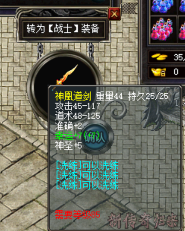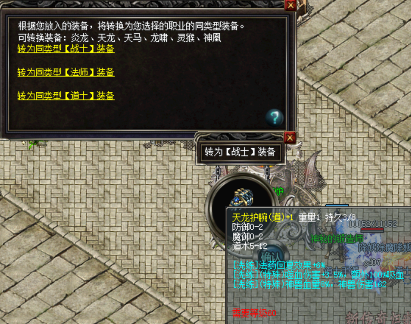 特别提醒:转换后仅保留强化属性,洗练、幸运、魔法躲避等其他属性不会保留,尤其是带有“幸运”属性的项链,请务必提前拆下幸运再进行转换操作,避免不必要的损失。