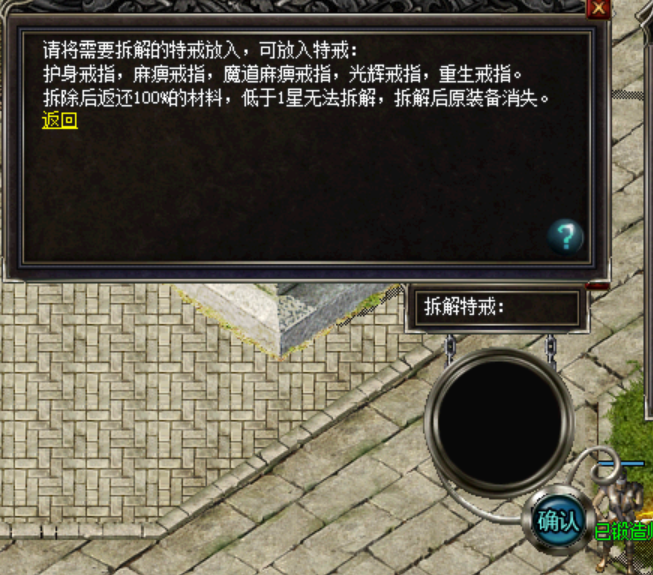拆解后返还100%的材料,低于1星无法拆解,拆解后原来的装备消失。