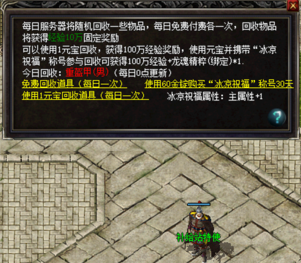 开放清凉回收活动,每天npc会随机一个活动道具进行回收,回收给与丰厚奖励,使用元宝可获得高额奖励,另外如果在使用元宝回收过程中携带”清凉祝福”称号,将获得巨额奖励。(各个版本的奖励不同,请以游戏中npc为准)