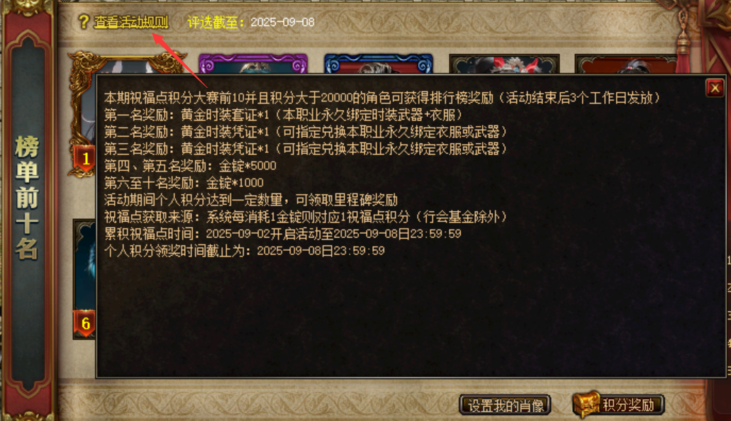 祝福点赛中积分奖励,根据本次活动积分领取对应个人奖励