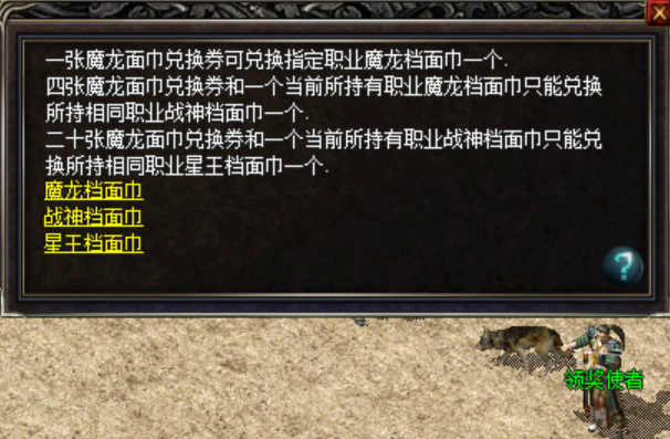 节日大使处每周二至每周四根据鉴定数领取魔龙面巾兑换券,可至领奖使者处兑换指定面巾