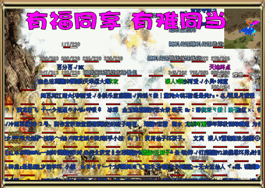 想起自己走过的游戏历程,有过很多的纯真和感动,也有过很多次痛心的哭泣和绝望的离去,但最终还是一次次的回头,在朋友们的真情感动和鼓励下,毅然地走了过来,一直走到了今天.我不想以自己的主观意识去评判一个事情的好与坏,每个人对自己的要求是不一样的,什么事情,总要有个尺度去衡量它,关键还是看自己怎么去掌握好这个尺度.反正大家各有各的活法,总之我要感谢归来,因为在这里我认识了很多的好朋友,为我带来了很多的快乐,在我痛苦的时候他们总是能及时的送来问候,让我体会一种意外的感动,希望在今后的生活中这份感动能继续陪伴我.也愿朋友们快乐开心每一天!