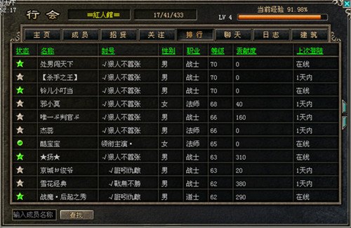 红人馆——六八区一个人数不多的小行会,但在六—八区却是无人不知、无人不晓响当当的行会。看看它的组成您就会对他的声名显赫略知一二。